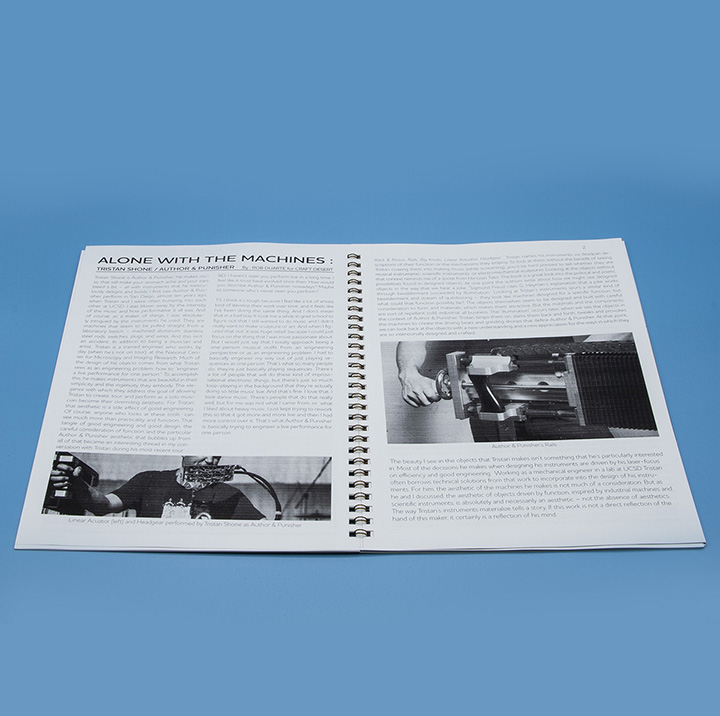 Tristan Shone (Stage name “Author and Punisher“) creates intense, driving, industrial music on carefully crafted machines. His backgrounds in engineering, music, and art, come together to create a performance that places him in direct contact with grinding, spinning, sliding, crunching, heavy custom made machinery, despite the sounds themselves being digitally created. His machines are used to produce and manipulate the music. Rob Duarte (Artist and educator) interviews Shone and discusses his inspirations, and drive to bring the digital into direct human contact through his machines.